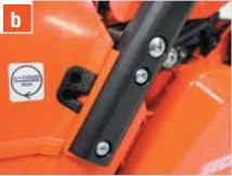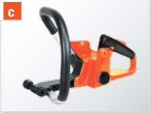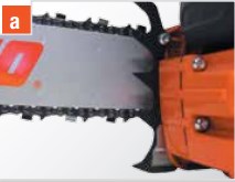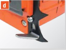 d)Металлический уловитель цепи обеспечивает безопасность в случае разрыва или соскока цепи во время пиления |