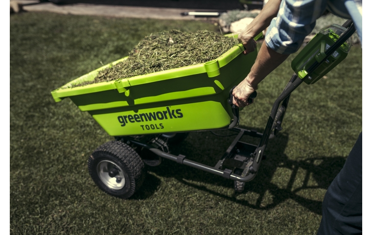 Аккумуляторная садовая тележка Greenworks G40GC 40В имеет