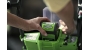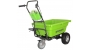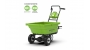 передний и задний ход, функцию быстрого сброса для быстрой и простой разгрузки. Время работы - до 22 минут с аккумулятором 2 А/ч. Она предназначена для перевозки груза массой до 100 кг. Объем ковша садовой тележки составляет 106 литров. Ковш оборудован специальными местами для надставных бортов или для крепления грузов ремнями.