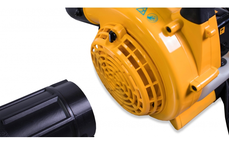Мощность 0,75 кВт. Подойдет для уборки свежеопавшей листвы и легкого мусора. Работает в двух режимах: нагнетания и всасывания с функцией измельчения листьев.