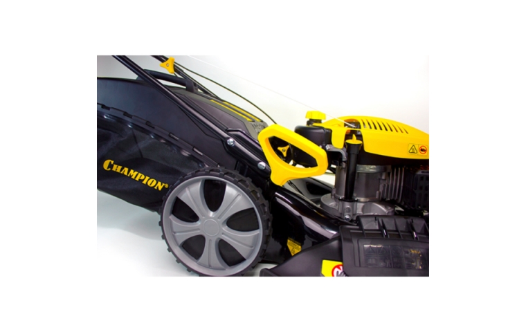 CHAMPION LM5345 – бензиновая самоходная газонокосилка с комбинированным травосборником, подходит для кошения травы на больших газонах. Мощность модели – 4,5 кВт. Для удобства пользователя агрегат оборудован мягкой рукояткой из вспененного каучука. Выброс травы выполняется в сторону, следом за газонокосилкой или в травосборник. Модель имеет 7 позиций для регулировки высоты скоса. Четыре пластиковых ударопрочных колеса на 2-х подшипниках на каждом (диаметр - передние 200 мм., задние 280 мм.) делают ход мягким и маневренным.Наличие встроенного штуцера для подключения воды позволяет легко и быстро очистить корпус (деку) газонокосилки от остатков травы. Для этого достаточно подключить шланг с водой к штуцеру, завести двигатель, подать воду и дать поработать газонокосилке несколько минут.