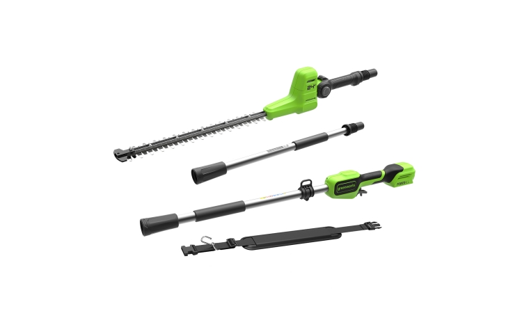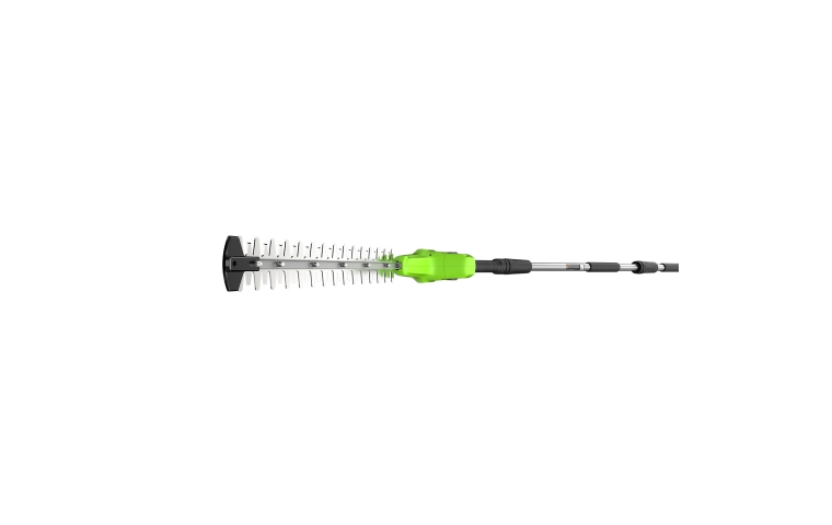 Кусторез штанговый аккумуляторный Greenworks G24PH511* — кусторез из серии 24В для стрижки кустарников и живой изгороди. Оснащен двусторонним ножом 51 см с алмазной заточкой. Шаг среза составляет 28 мм. Длина инструмента полностью — 273 см.