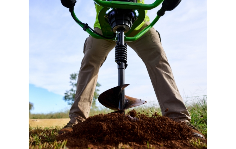По сравнению с бензиновыми аналогами этот землебур обладает рядом преимуществ. Одно из них — реверс, то есть вращение шнека против часовой стрелки, что очень полезно при работе с твердыми грунтами, когда нужно вытащить шнек. Вторая особенность — функция защиты от отдачи с помощью встроенного гироскопа. Это повышает безопасность использования устройства. Инструмент оснащен плавным пуском для избежания рывков и перегрузок.