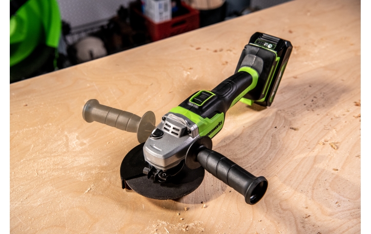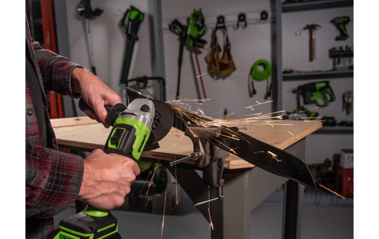 Аккумуляторная угловая шлифовальная машинка Greenworks GD24AG 24В — болгарка из серии 24В для резки, зачистки и шлифовки материалов. Имеет диаметр диска до 125 мм, посадочное место 22,2 мм, скорость до 10500 об/мин.