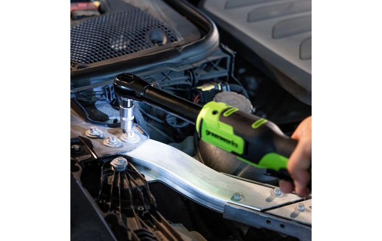 Удлиненная конструкция редуктора позволяет работать с крепежом в труднодоступных местах. В отличие от пневматических инструментов, аккумуляторный гайковерт-трещотка GD24RWX обладает высокой маневренностью и универсальностью из-за отсутствия пневматических шлангов.