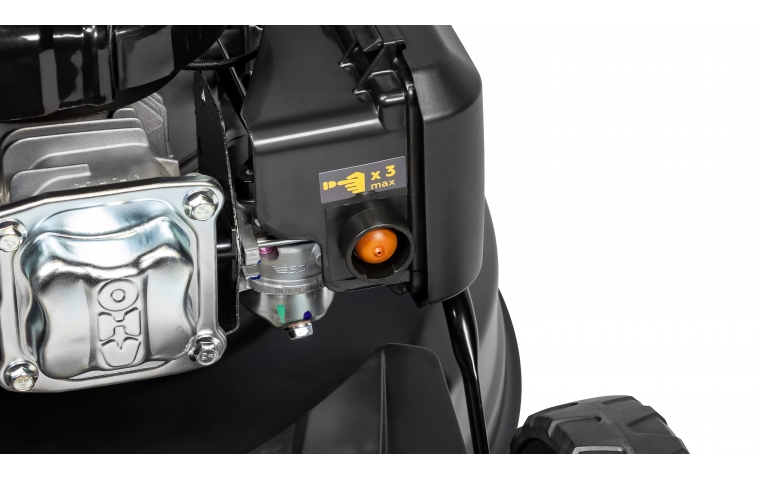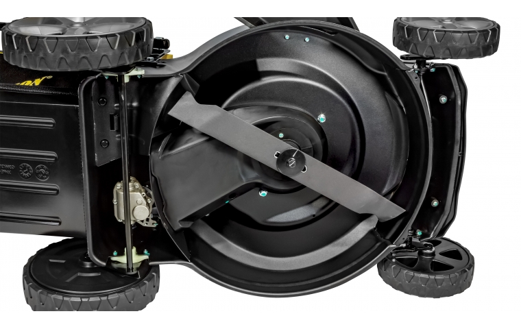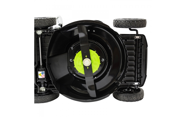 Газонокосилка имеет один отсек питающего аккумулятора и дополнительный отсек для хранения запасного аккумулятора. Когда основной аккумулятор разряжается, вам не нужно идти за новым — достаточно просто поменять аккумуляторы местами.