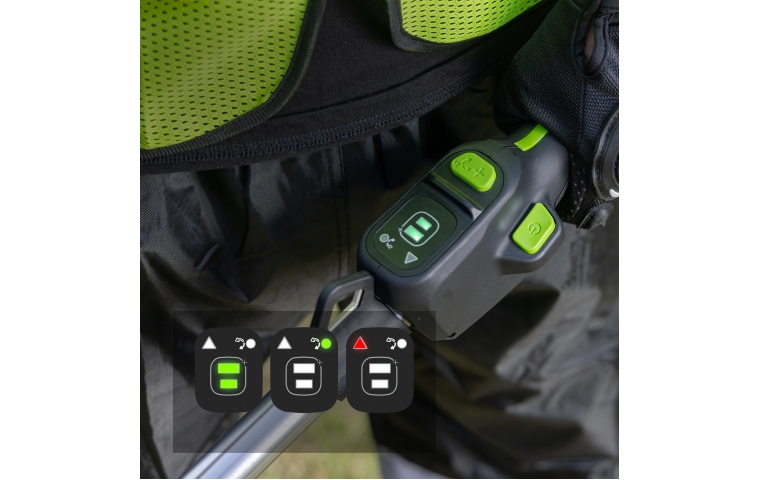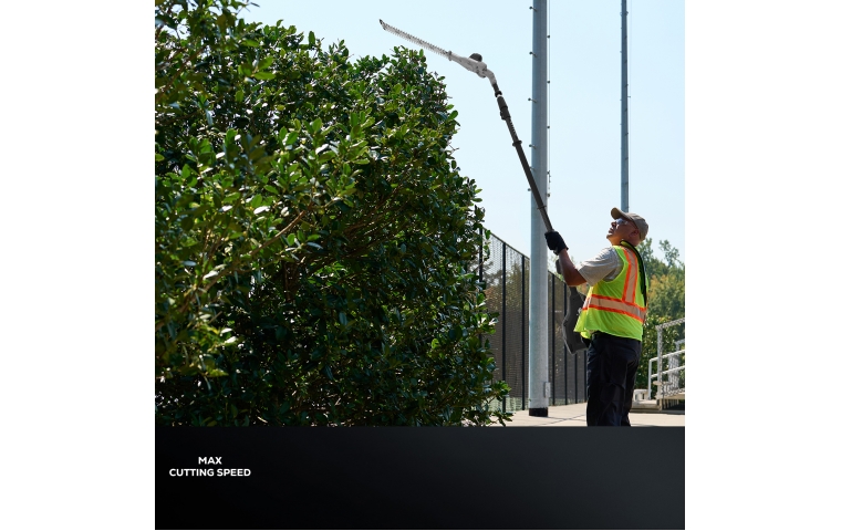 Длина ножа модели составляет 51 см. Стальные лезвия имеют лазерную обработку и двухстороннюю алмазную заточку. Нож поворачивается на 135 градусов с фиксацией в 7 положениях. Кусторез имеет два режима работы: 4500 ходов лезвия в минуту для максимальной производительности или 3800 ходов лезвия в минуту для идеальной фигурной обрезки.