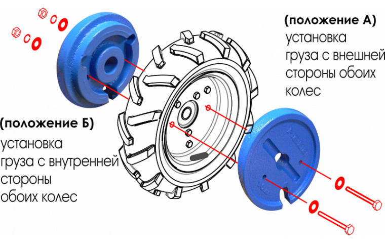 Грузы: предназначены для утяжеления мотоблока и мини-трактора при выполнении тяжелых работ для лучшего сцепления с почвой.