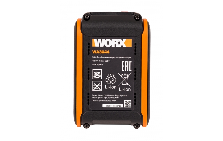 Литий-ионный аккумуляторная батарея WORX WA3644 – это универсального решение для всех аккумуляторных устройств WORX. Взаимозаменяемость аккумуляторов позволяет использовать одну батарею для 2-х и более инструментов. Пара таких батарей позволит вам работать со всей линейкой садовой техники WORX 40В.